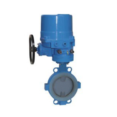 D971F46电动衬氟蝶阀采用对分两片阀体组合,阀座与阀体内衬一体化阀门工作时,只有全塑阀座与衬塑蝶板与介质接触,该衬氟阀门适用在 -50℃~150℃的各种浓度的王水、硫酸、盐酸、氢氟酸和各种有机酸、强酸、强氧化剂及其它腐蚀性气体、液体介质的各种工业管路上使用。